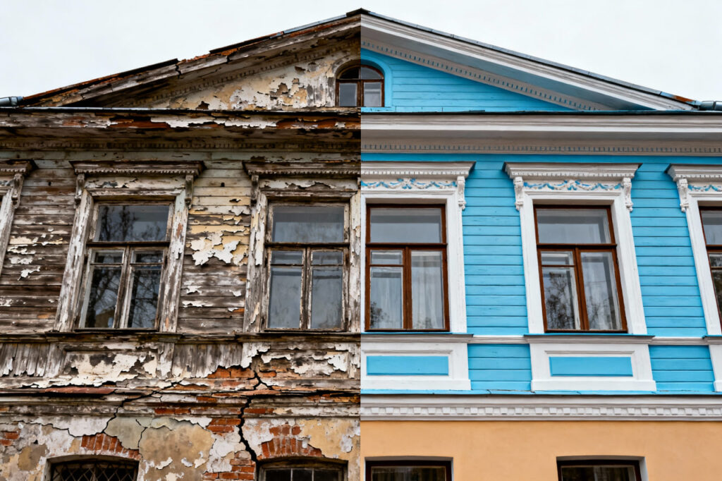 Renovācijas laikā īpaša uzmanība jāpievērš pamatu nostiprināšanai, jo daudzu vecu koka māju pamati ir bojāti vai neatbilst mūsdienu standartiem. Sienu restaurācijā bieži izmanto metodi, kad bojātās dēļu sekcijas tiek nomainītas ar jaunām, maksimāli saglabājot oriģinālo materiālu. Jumta konstrukciju atjaunošana arī ir būtiska, jo jumts ir galvenā aizsardzība pret mitrumu.